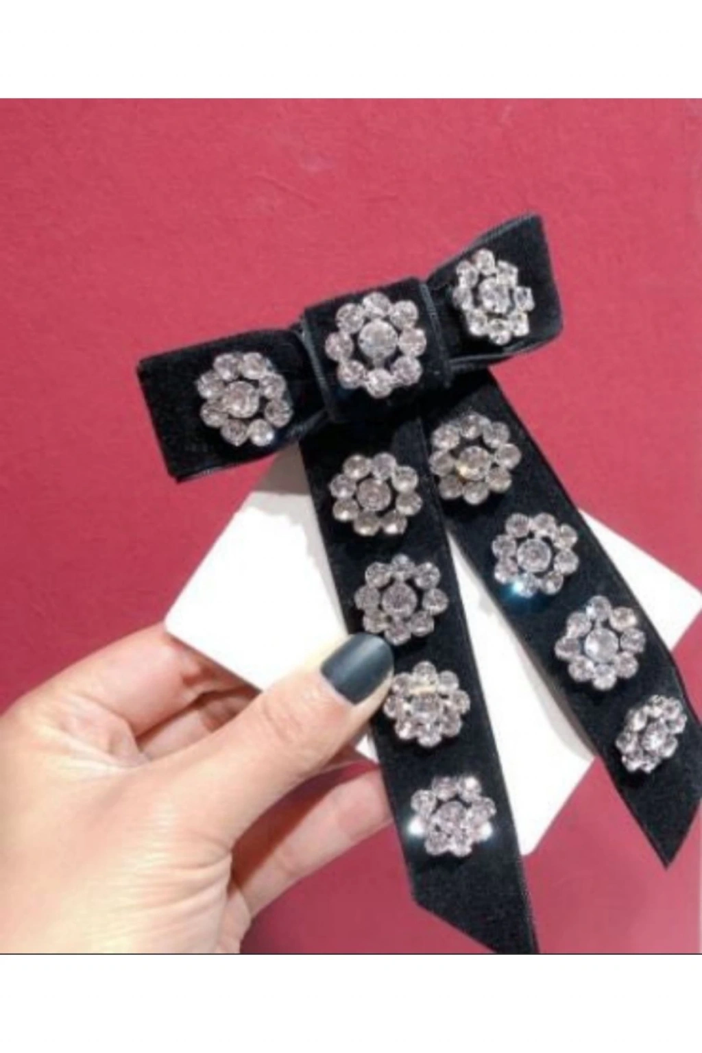 Siyah Şifon Kumaş Fiyonk Toka Otomatik Klipsli