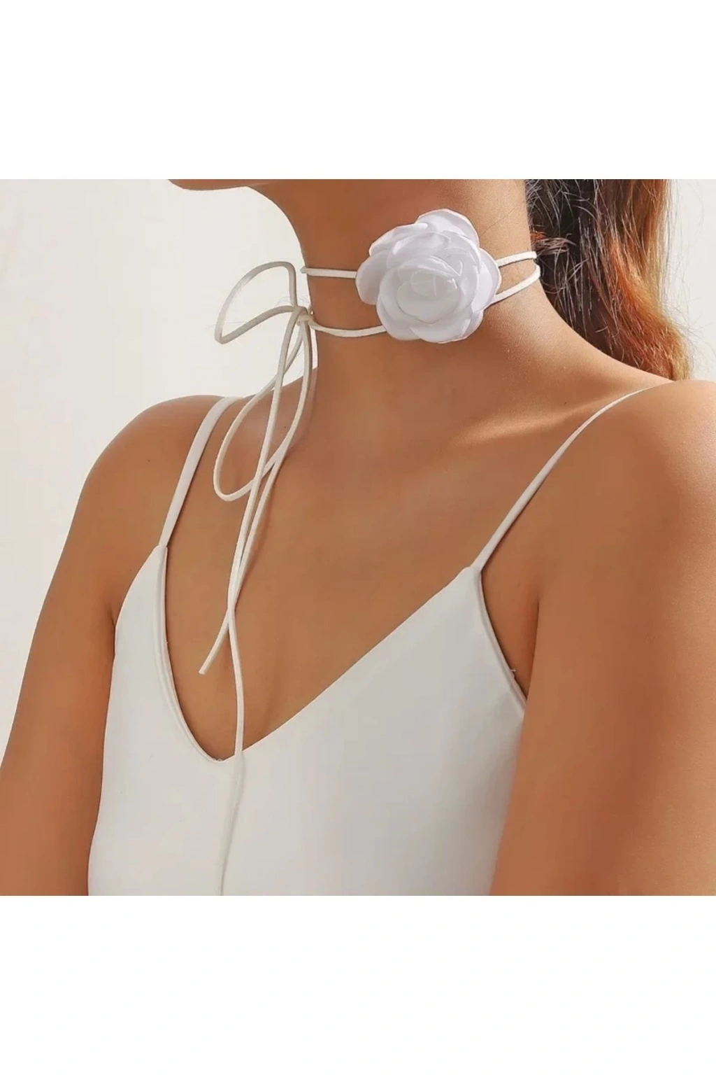 Vintage Kot Kumaş Gül Choker Kolye Bağlamalı Choker