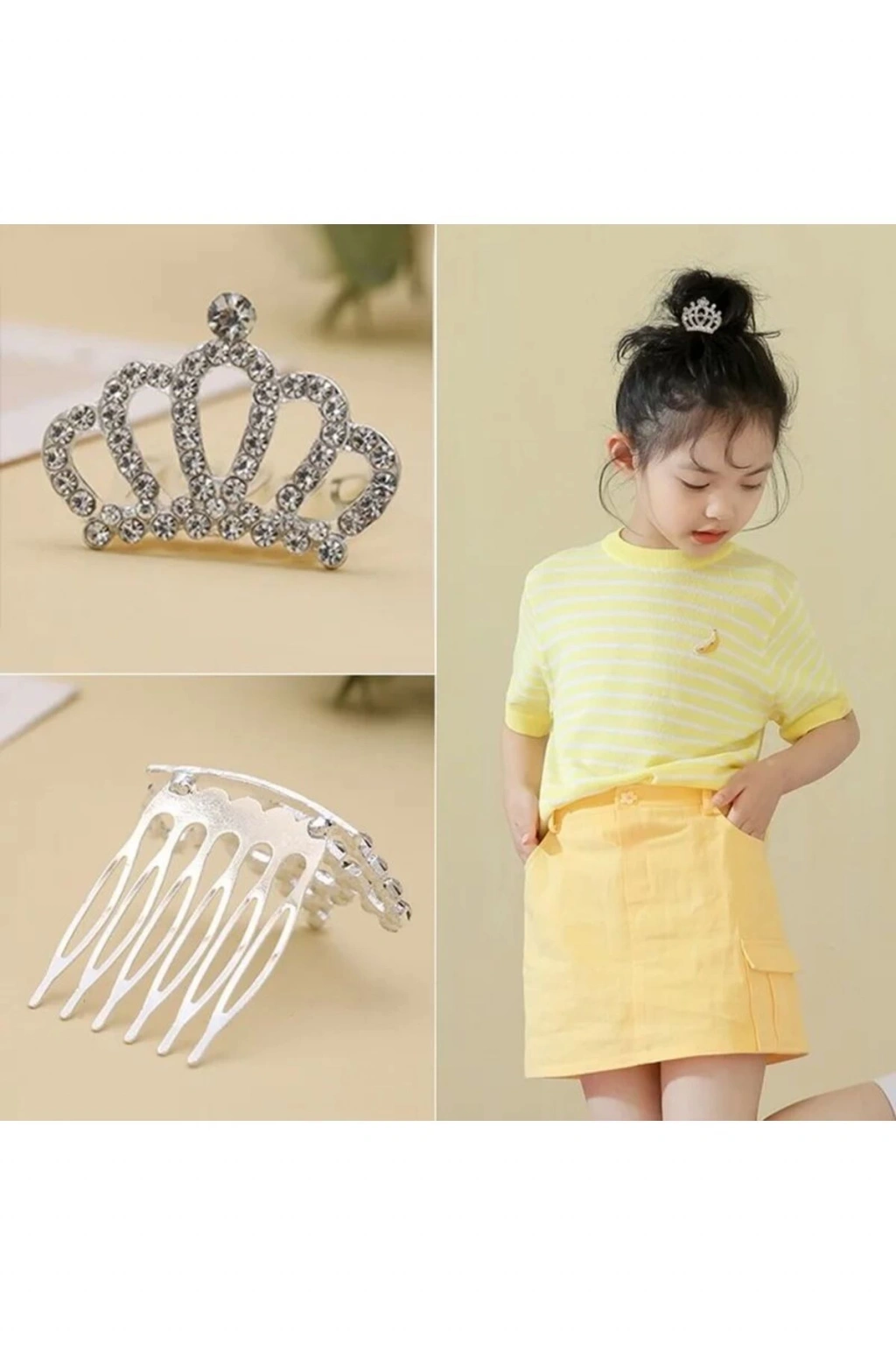 Özel günlerde ve partilerde şıklığınızı tamamlayan vintage mini tarak toka taç, göz alıcı kristallerle süslenmiştir.; Taş detaylarıyla zenginleştirilmiş tasarımıyla dikkat çeken bu taç, hem zarif hem de eğlenceli bir aksesuar olarak öne çıkar.; Çocukların da dahil olduğu tüm etkinlikler için ideal olan bu taç, minikler için de zarafet ve neşe katmak üzere tasarlanmıştır.; Kristal taşlarla bezeli bu mini tarak toka taç, hem klasik hem de modern tarzları harmanlayarak her türden kıyafetle uyum sağlayacak şekilde tasarlanmıştır.; Parti veya düğün gibi özel günlerde, bu taçla unutulmaz anlara imza atabilirsiniz.;