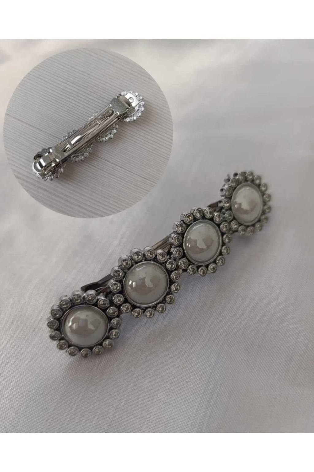 Saten Fiyonk Desenli Fransız Otomatik Klipsli Kumaş Toka