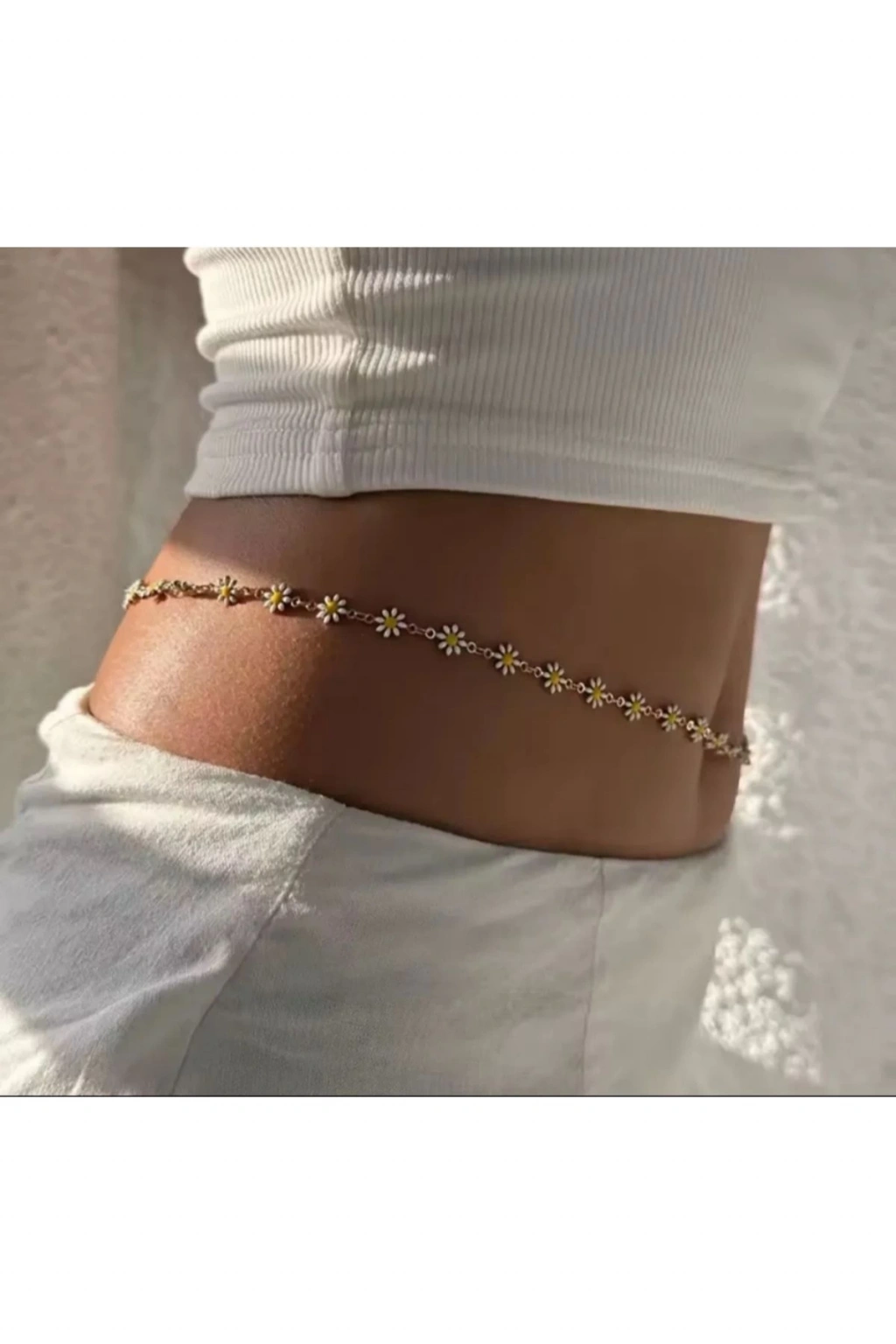 VİNTAGE PAPATYA BEL ZİNCİRİ (KREM-SARI)