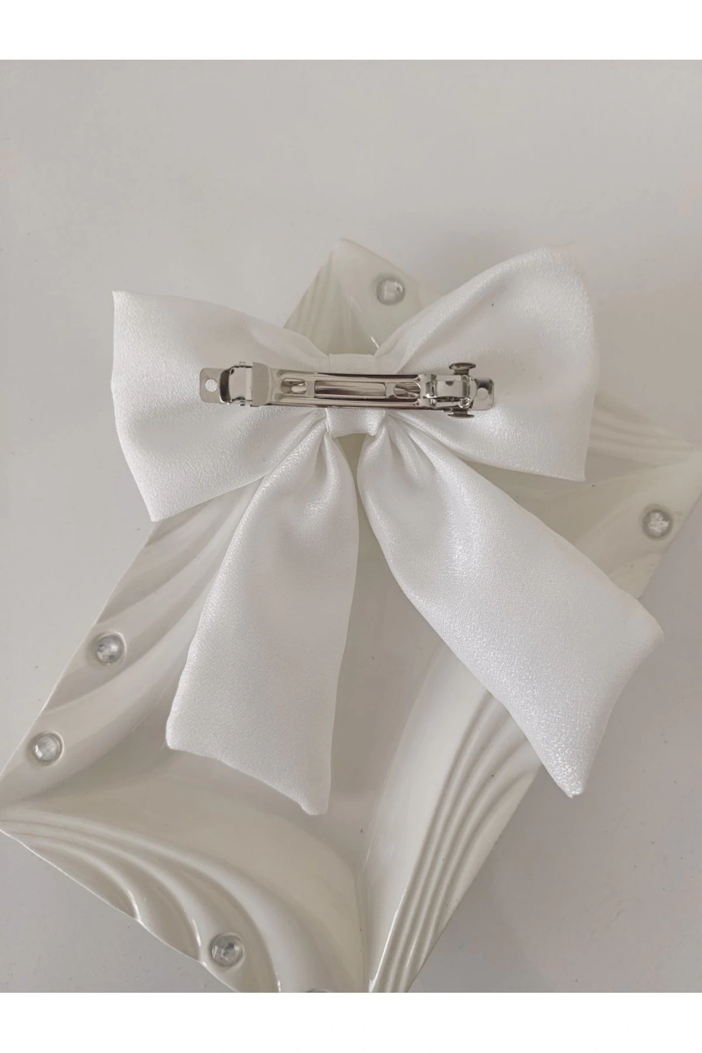 Saten Fiyonk Desenli Fransız Otomatik Klipsli Kumaş Toka