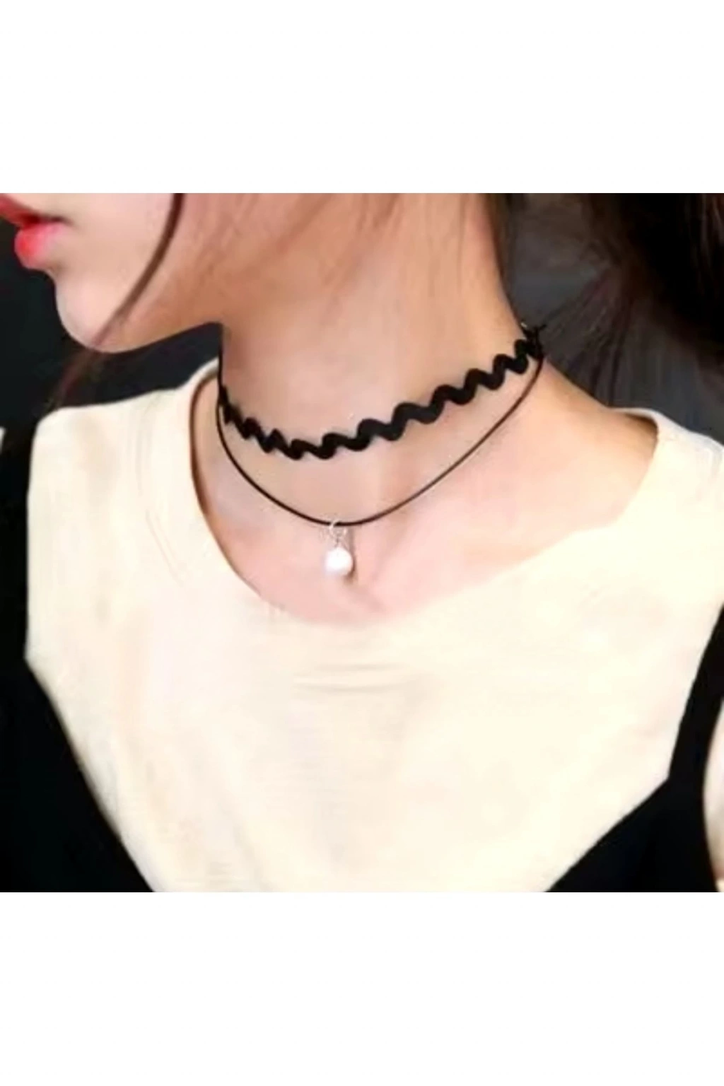 Vintage Çift Kat Deri Choker Kolye (Siyah)