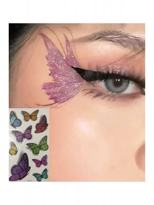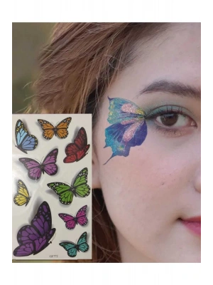 Vintage Kelebek Model Yüz Süsleme Kağıdı Yapışkanlı Sticker Tatoo Dövme