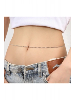Vintage Kristal Taşlı Bel Zinciri (Gümüş)
